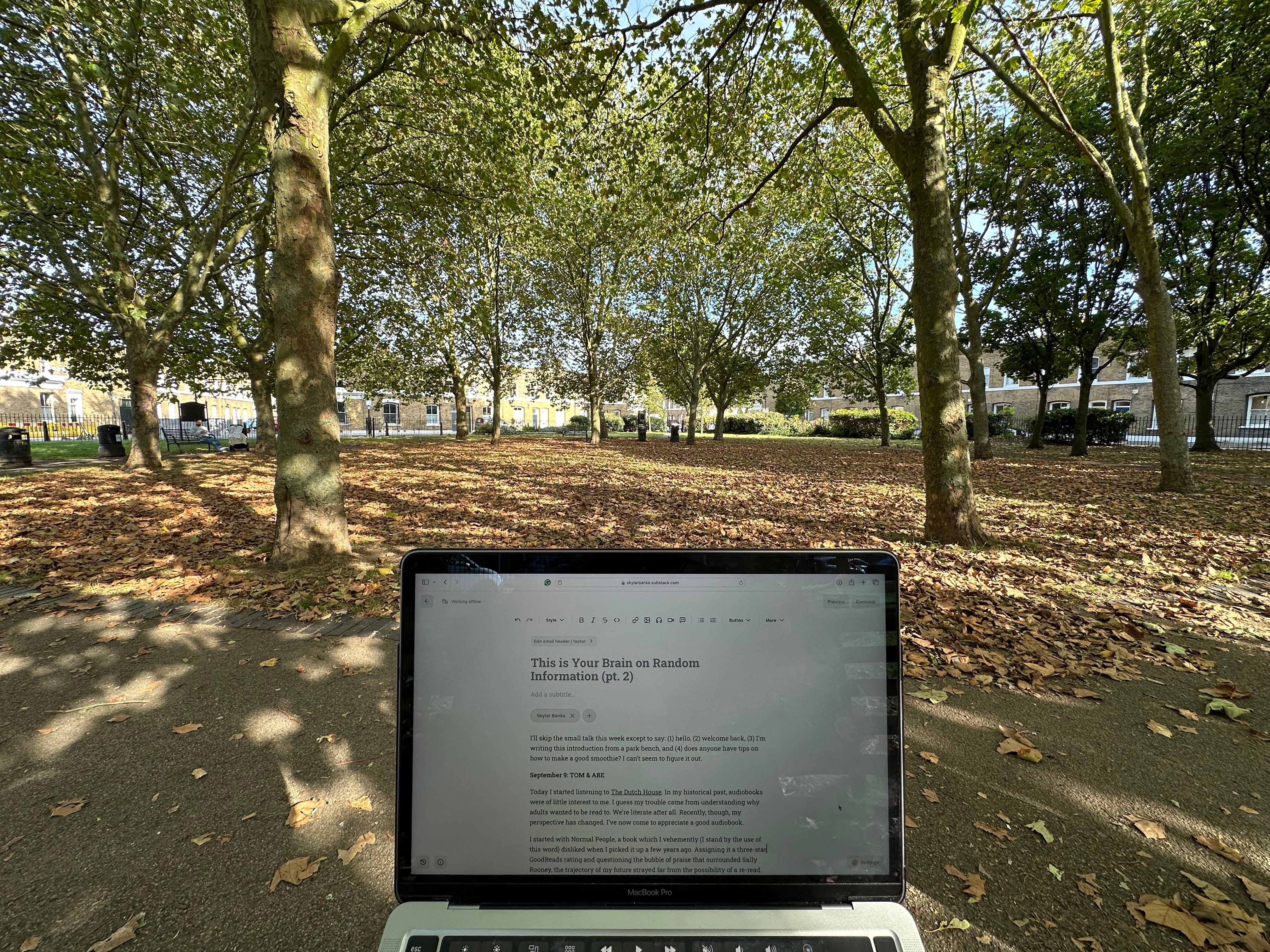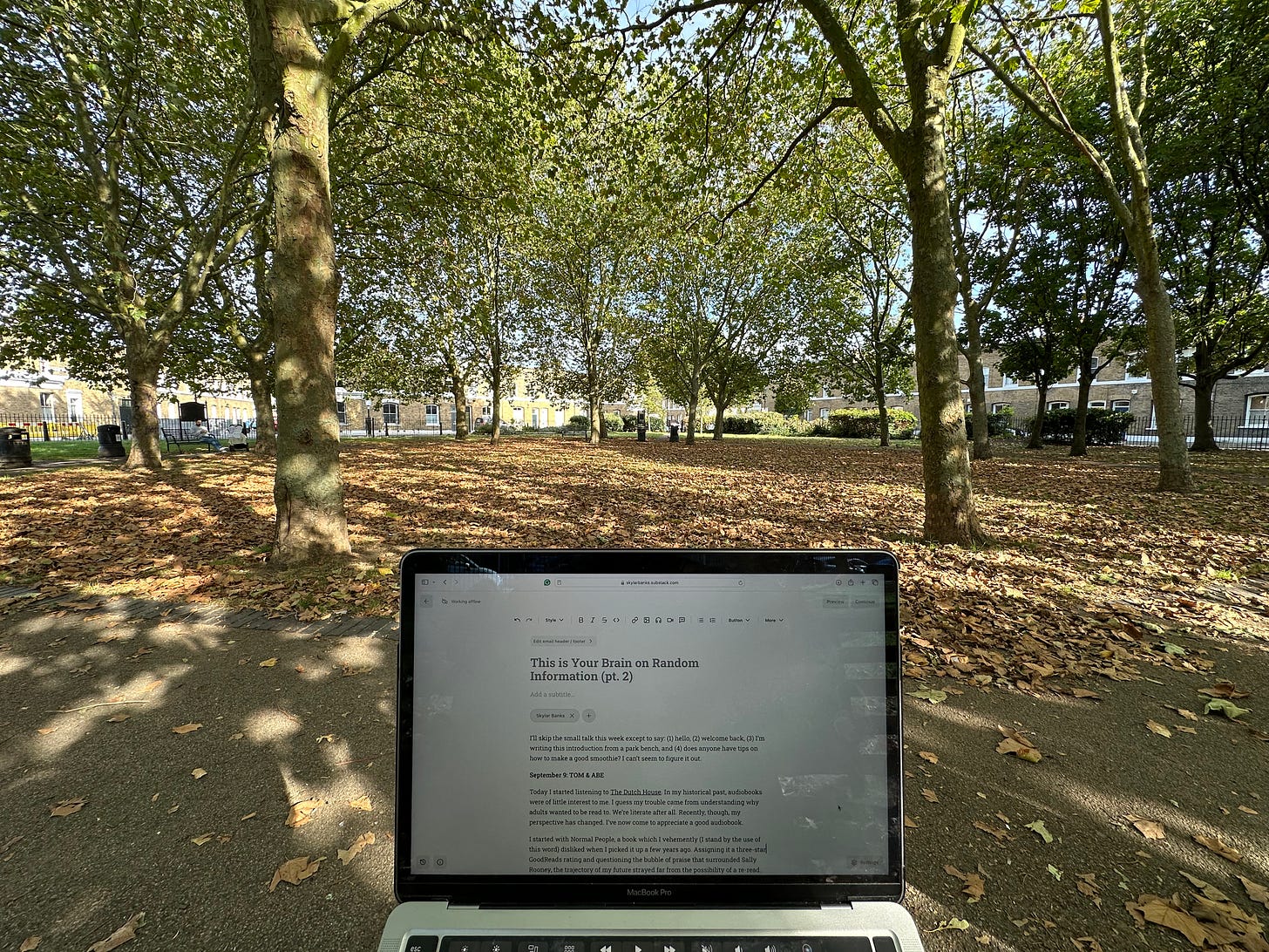 I’ll skip the small talk this week except to say: (1) hello, (2) welcome back, (3) I’m writing this introduction from a very uncomfortable bench in a park off Columbia Road, and (4) does anyone have tips on how to make a good smoothie? I can’t seem to figure it out.